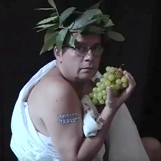 Reconstruction of the "Bacchino Malato", the Sick Bacchus (Galleria Borghese, Rome): it is a work that highlights "the scene" of the historical figure of Caravaggio, almost autobiographical, and that deliberately teases a kind of contemporary living.